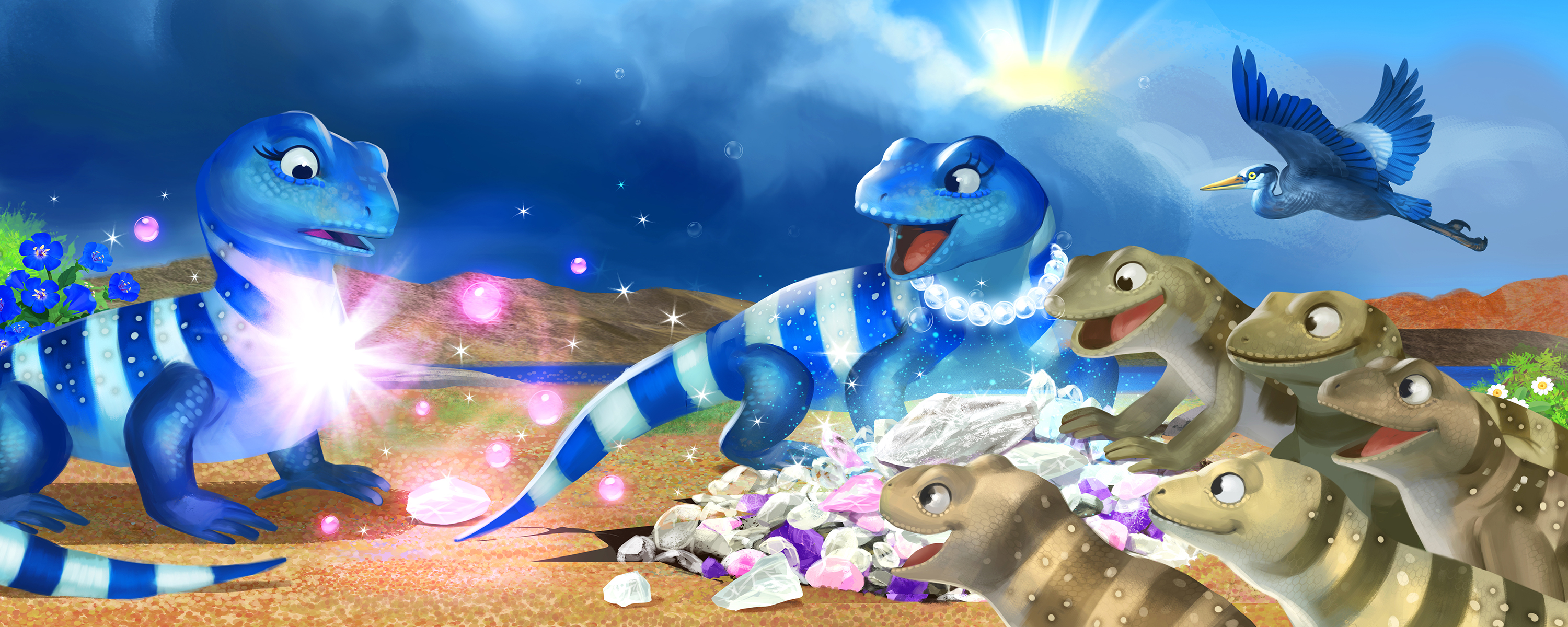 Children’s Book Illustration for “Blue Hissy Highness and the Shiny Stones”